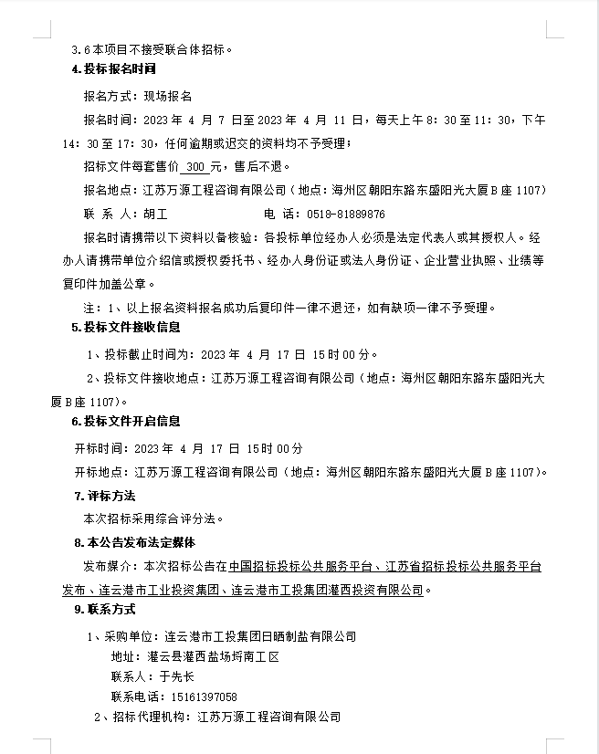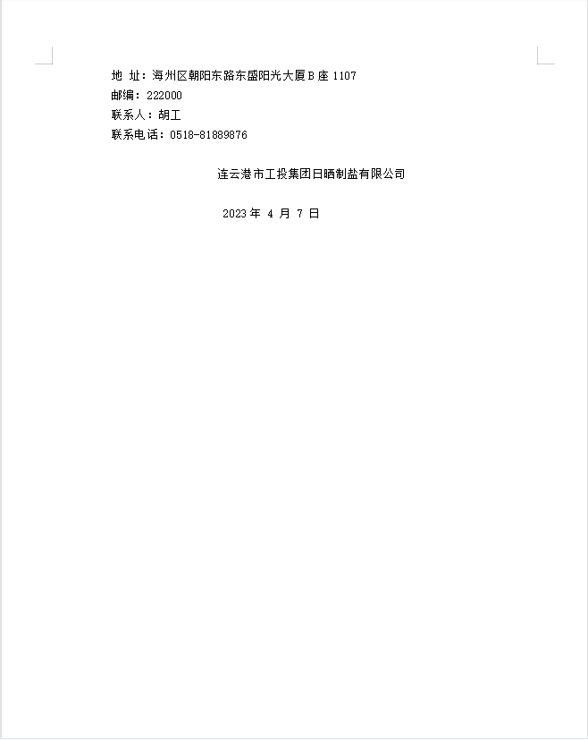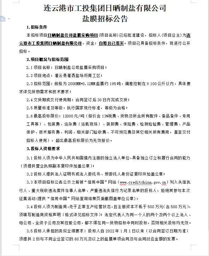 连云港市工投华体会(中国)日晒制盐有限公司盐膜招标公告