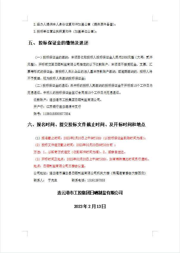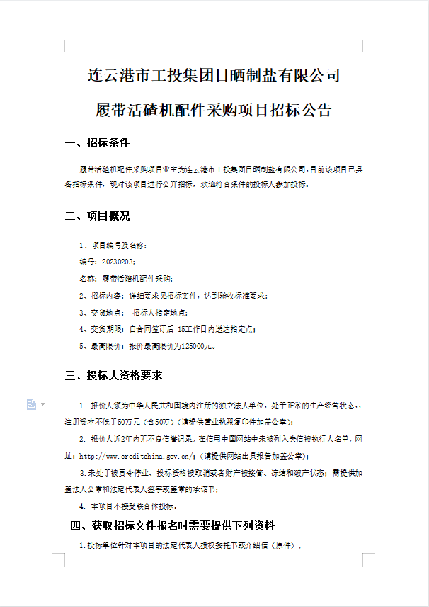 连云港市工投华体会(中国)日晒制盐有限公司履带活碴机配件采购项目招标公告