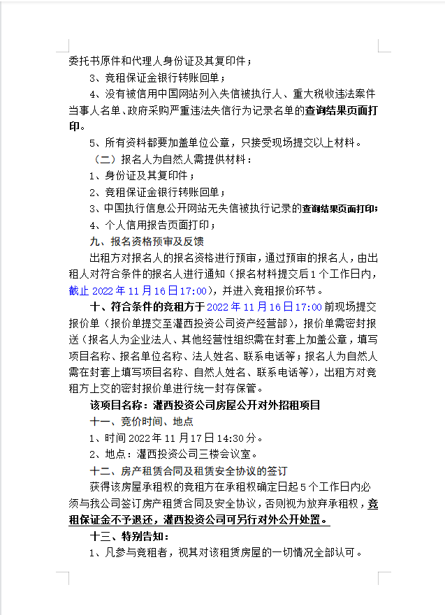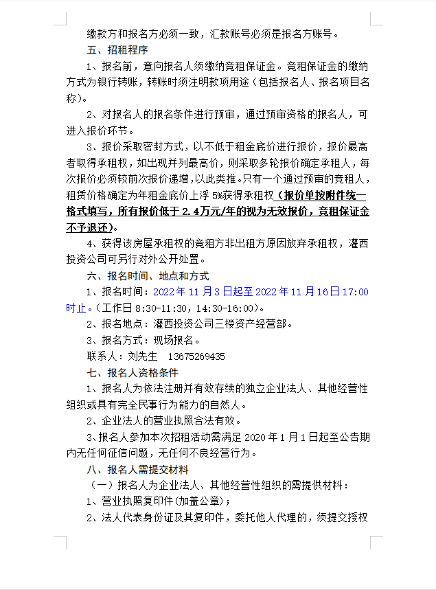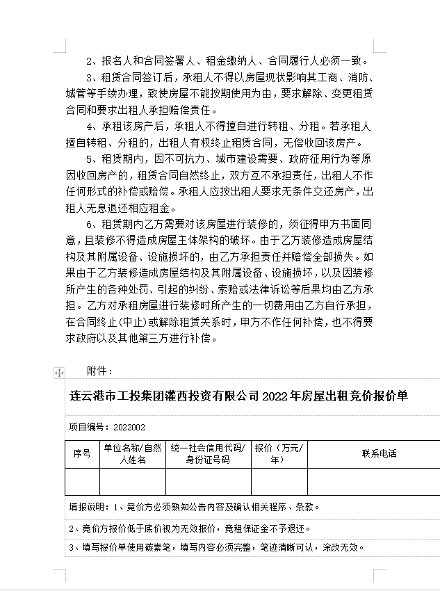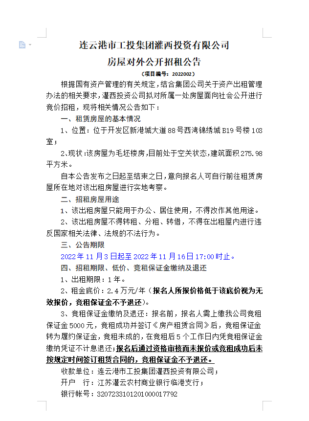 连云港市工投华体会(中国)灌西投资有限公司房屋对外公开招租公告