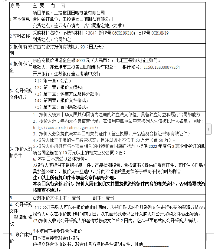报价保证金接收人:连云港市工投华体会(中国)日晒制盐有限公司。
