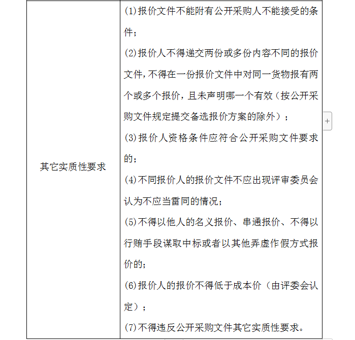 1、初步评审(符合性审查)是指评审委员会审查每个报价人及每一报价文件是否对公开采购文件提出的所有实质性要求和条件做出响应,有无显著的差异或保留。评审委员会将仅对在实质上响应公开采购文件要求的合格报价(有效)文件进行评估和比较。