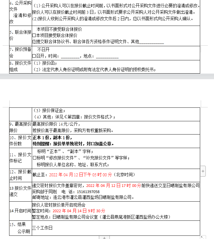 报价保证金接收人:连云港市工投华体会(中国)日晒制盐有限公司。