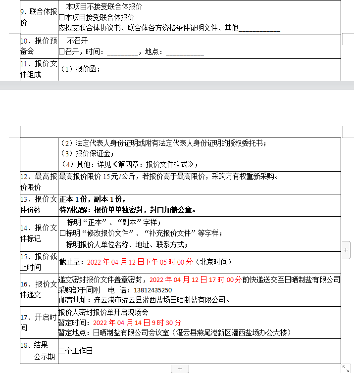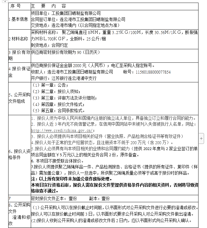 报价保证金接收人:连云港市工投华体会(中国)日晒制盐有限公司。