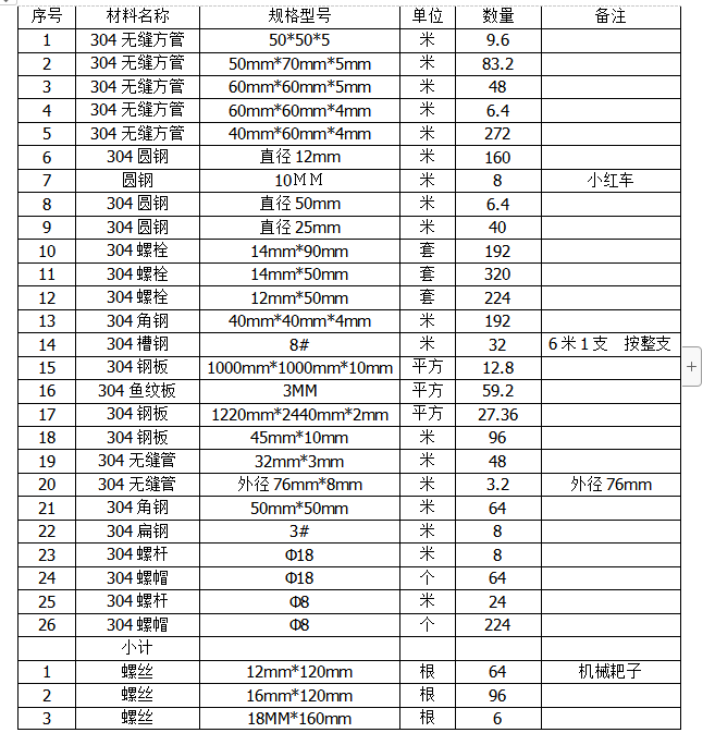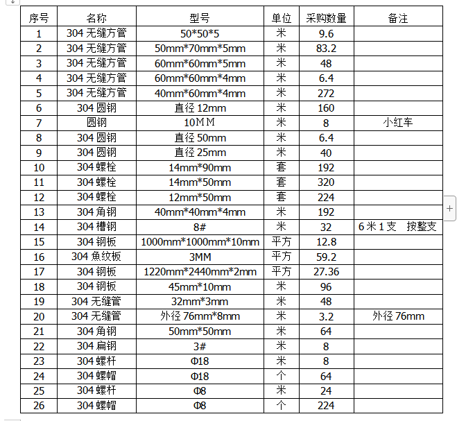 不锈钢(304)采购项目