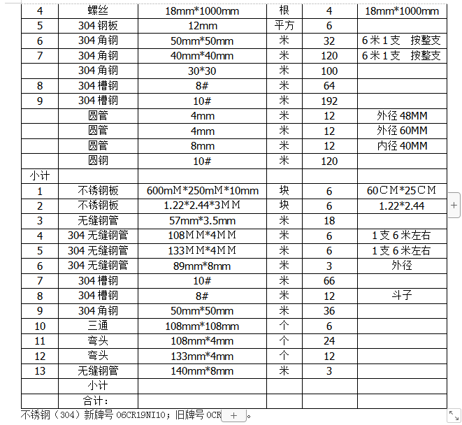 4.项目概况:不锈钢(304)新牌号06CR19NI10;旧牌号0CR18NI9(304不锈钢)。