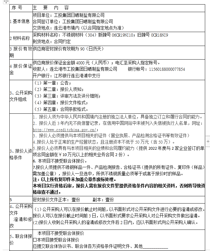 报价保证金接收人:连云港市工投华体会(中国)日晒制盐有限公司。