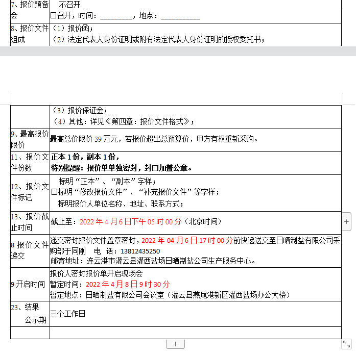 密封报价开启时间及地点:2022年04月8日前,如有特殊情况时间另行通知。