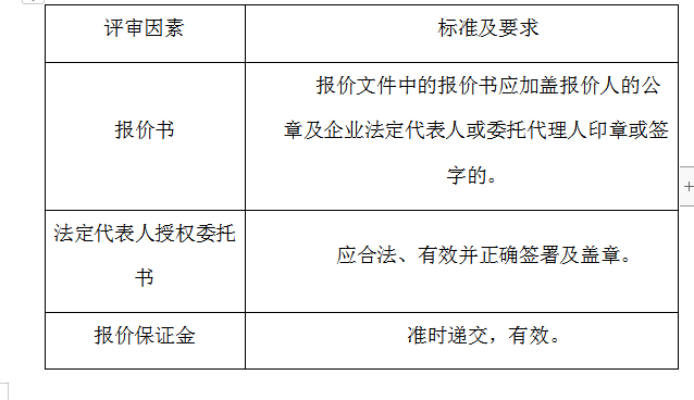 2、评审委员会将根据以下标准对各报价人进行初步评审,有一项不符合要求的,作否决报价处理,不进入详细评审。
