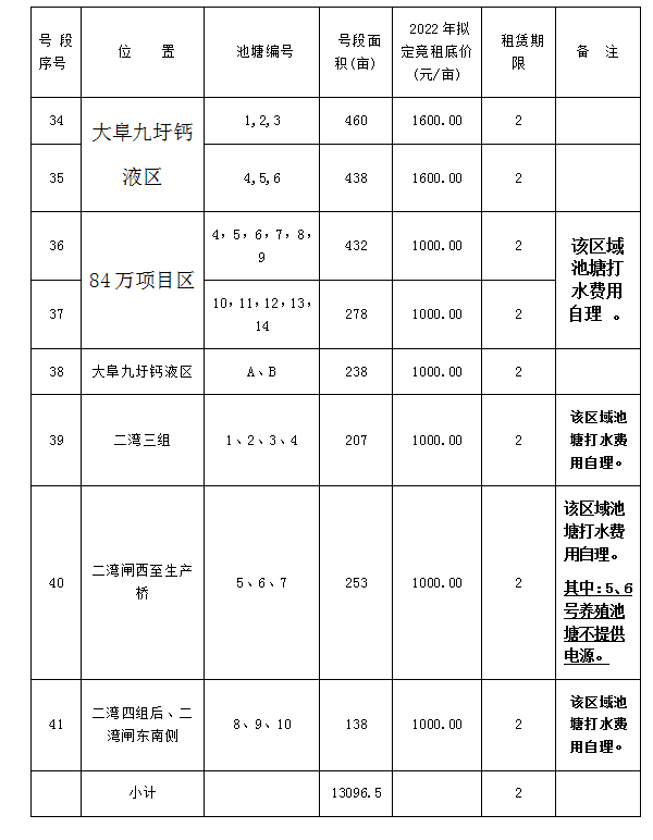 根据华体会在线关于资产租赁相关文件精神的要求及本公司淡水养殖池塘实际情况,经灌西投资公司池塘租赁领导小组研究,报请华体会(中国)公司同意,2022年现对下述养殖池塘公开对外竞租。