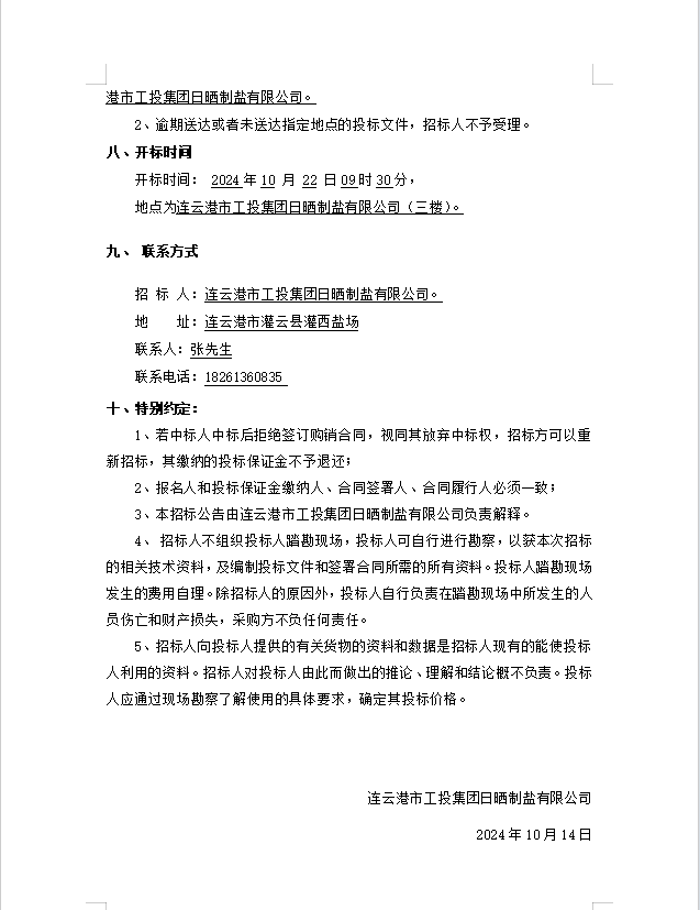 连云港市工投华体会(中国)日晒制盐有限公司橡胶履带招标公告