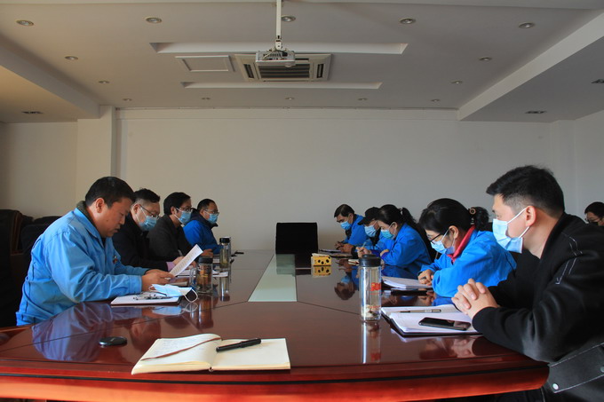 11月11日,我公司在二楼会议室召开疫情防控工作推进会。公司党委书记、董事长、总经理朱桂玉主持会议并讲话,公司领导班子成员出席会议,各车间单位负责人、机关各部室负责人参加会议。