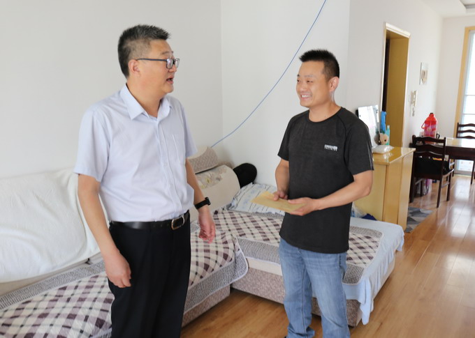 在公司党委书记、董事长、总经理朱桂玉的陪同下,匡友本来到困难党员王东海家,送来了慰问品及慰问金,并与其进行了亲切的交流,详细了解他存在的困难,鼓励他要树立战胜困难的信心,组织是坚强的后盾。王东海表示,感谢组织的关怀,今后一定会更加努力工作,为企业的发展作贡献。(金宣)