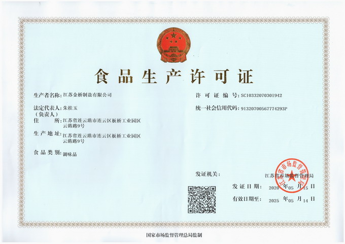 5月15日,我公司顺利获得《食品生产许可证》,成为江苏省第一家获得《食品生产许可证》的国家食盐定点生产企业。
