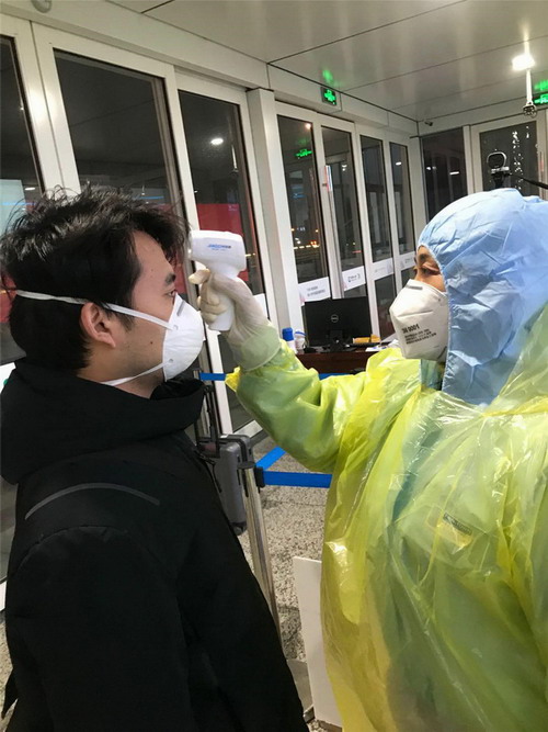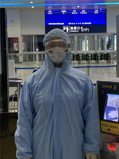 测量体温看似轻松,但是对测温枪反反复复的抬起放下,经常累得胳臂酸疼。除了做好体温检测工作,每天还要回答成百上千名乘客的问题,维持秩序。看似简单的话语、简单的动作,但每天一个班次结束后,几乎都是喉咙嘶哑,她胳膊酸痛。因为工作的需要,几乎每天一直都是站着工作,到家里腿都很僵硬。