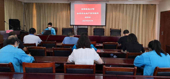 经过修改的《中华人民共和国安全生产法》将于202191日起正式实施。根据安全生产法中建立健全全员安全生产责任制的相关要求,7月份以来,金桥制盐公司全力做好安全生产法的学习宣贯及全员安全生产责任制的修订完善工作,确保法规宣贯全体参与、配套制度全部完善、安全责任全员覆盖。