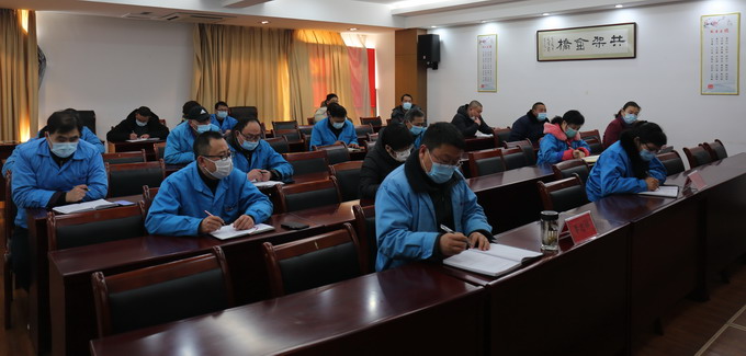 1月18日下午,我公司在三楼会议室召开2021年疫情防控及节前工作会议,公司领导班子全体成员出席,会议由副总经理何启明主持,各车间单位党政负责人、机关各部室负责人参加会议。