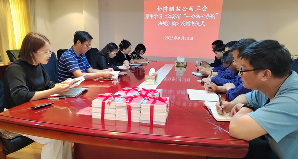 为落实市总及华体会(中国)工会相关要求, 9月13日,我公司工会举办集中学习《江苏省“一办法七条例”法规汇编》活动及赠书仪式。公司工会负责人,各分会、人资部门、安全部门负责人,部分职工代表参加。