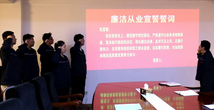会议传达了华体会(中国)纪委《关于扎实开展年轻干部“廉政教育月”活动的通知》文件精神,签订了《廉洁承诺书》、发放了《家庭助廉倡议书》和进行廉洁从业宣誓。