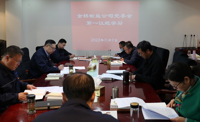 11月7日,我公司落实“第一议题”学习制度,学习习近平总书记论:“学习贯彻党的二十大精神”、“奋力夺取全面建设社会主义现代化国家新胜利”、“同心共筑中国梦”。会议由公司党委书记、董事长朱桂玉主持,公司党委班子参加学习。(金宣)
