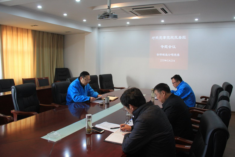11月29日,我公司在二楼会议室召开对照党章党规找差距专题会。公司党委班子成员参加会议,会议由党委书记、董事长、总经理朱桂玉主持。