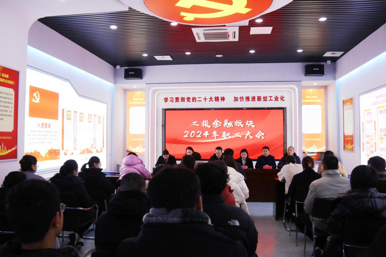 2024年1月19日下午,工投金融板块隆重召开了2024年职工大会。全体在岗员工参加大会。党支部书记、董事长徐兵主持会议。
