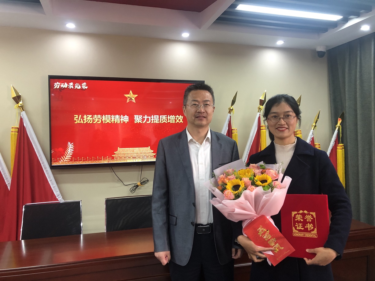 徐兵首先祝贺朱婷婷荣获连云港市五一巾帼标兵”称号,希望她继续发挥党员的先锋模范作用,发扬劳模的优良作风,团结带领风险部员工为格斯达公司的发展再创新佳绩!