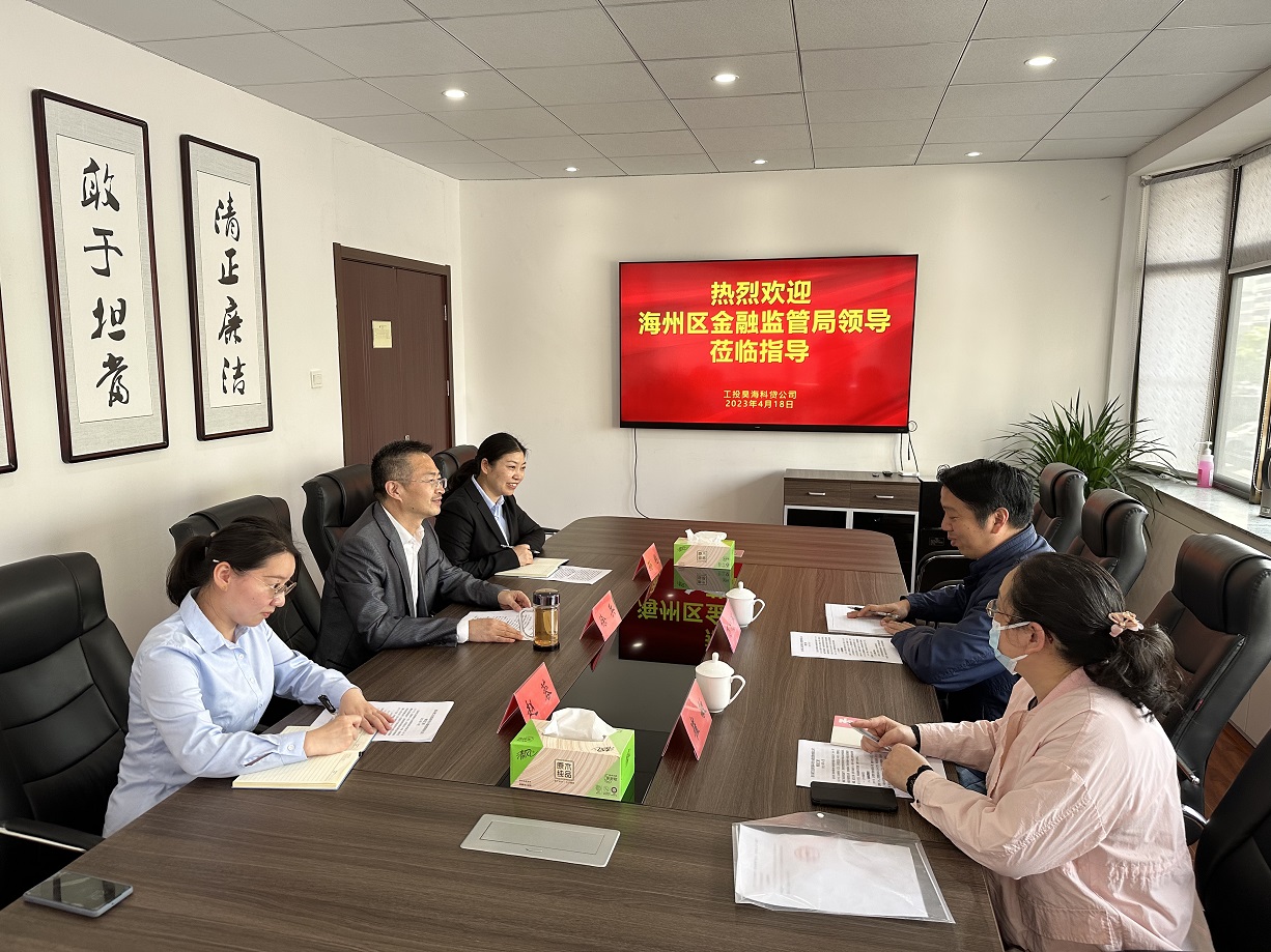 4月18日下午,海州区金融监管局副局长万利军、崔敏一行莅临工投科贷公司调研指导。
