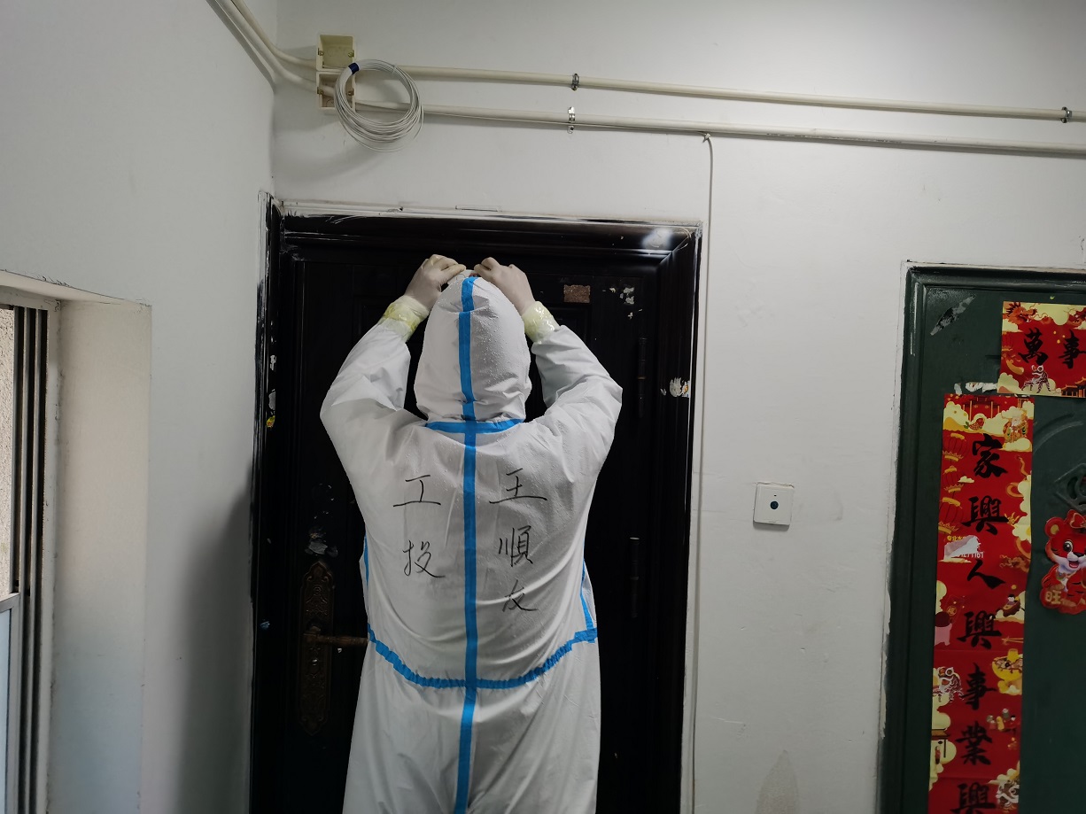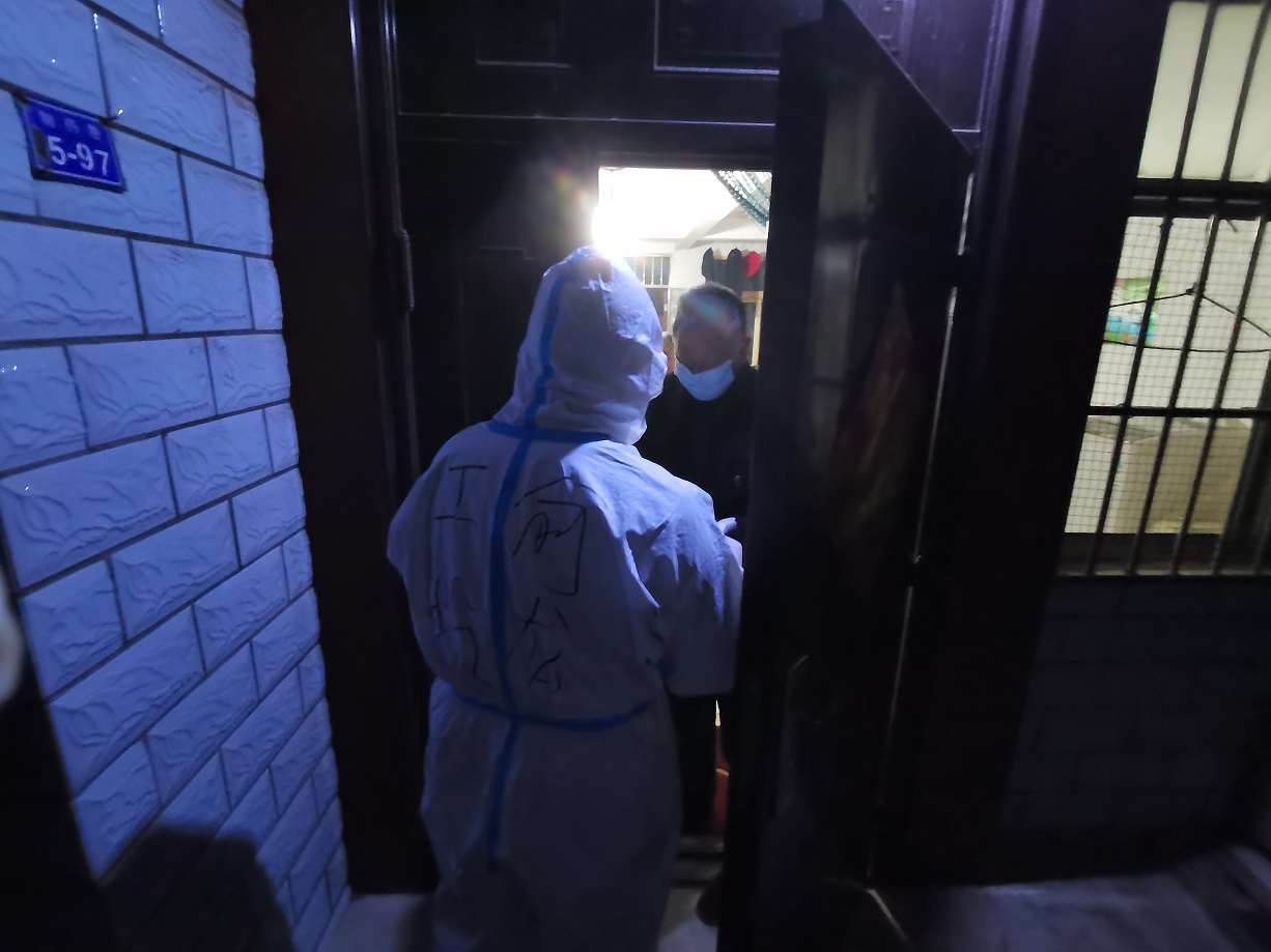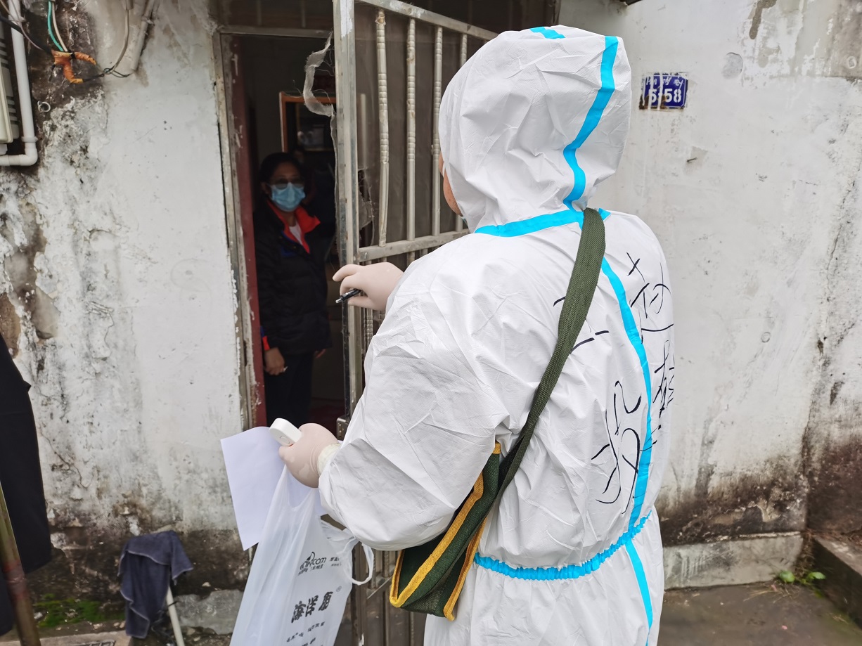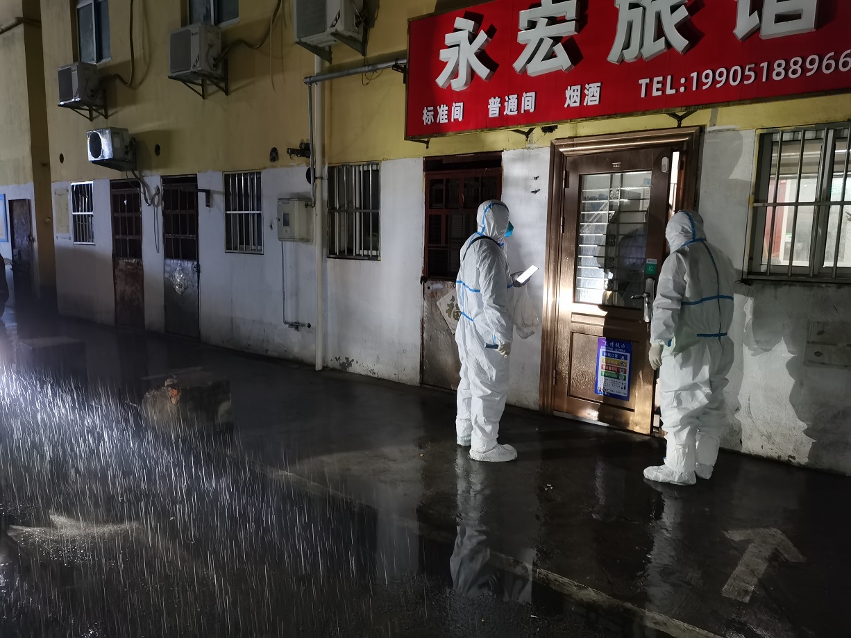 “终于完成任务了”,看着已被雨水打湿的安装名单,工投金融板块的三名志愿者长长地舒了一口气。志愿服务队进驻当天就按照社区的统一安排,立即开展了门磁安装门磁等一线工作。由于新桥社区是本轮疫情最早的“爆发点”,且辖区内多为老旧小区,街巷纵横、门牌号排列混杂,群租、合租情况普遍,外来务工人员较多,给安装工作造成了较大难度,恰巧当天夜里下起了大雨,雨水遮挡视线,让原本复杂的工作更添新的困难。志愿者一边电话联系,一边用手电查找街边的门牌,经过3个半小时的摸排,终于完成了全部的安装任务。