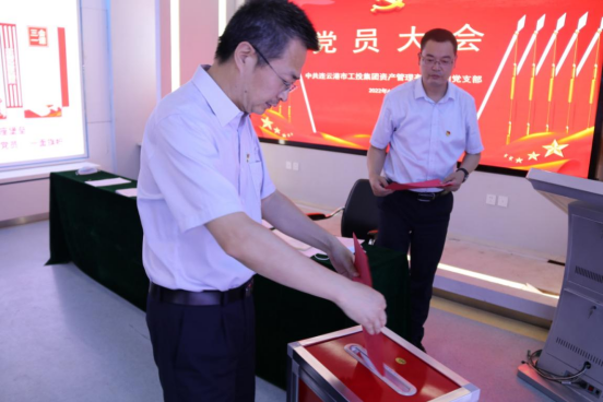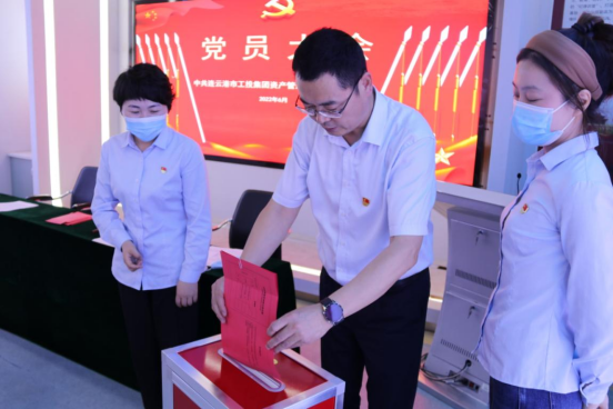 为了迎接建党101周年和二十大的召开,落实好党组建设,强化党员干部不忘初心、牢记使命的责任感和使命感,牢固树立党员先锋模范意识。资产公司党支部6月14日召开迎“七一”党员大会。预备党员转正,重温入党誓词,表彰“最美逆行者”党员大会。大会由资产公司党支部书记徐兵主持,支部班子成员、全体党员及部分员工代表参加。 大会在雄壮的《国际歌》中开幕。