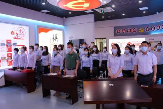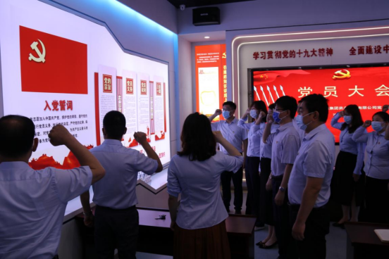 新老党员一起面向鲜红的党旗,重温入党誓词。庄严隆重的氛围,铿锵有力的誓言,使全体党员更加坚定了为党和人民事业奋斗终生的决心。