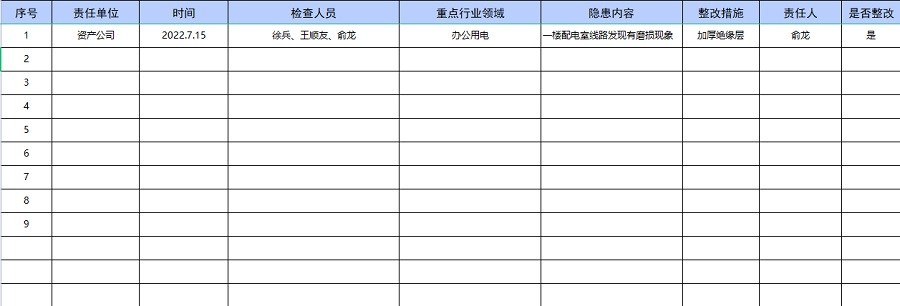 资产管理公司安全生产“百日攻坚行动”隐患汇总表