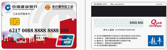 下图为工会会员服务卡卡样,连云港市总工会发行的工会会员服务卡只此一种设计,请认准连云港市总工会logo和工会会员服务卡字样,若同此图不同均非工会会员服务卡。