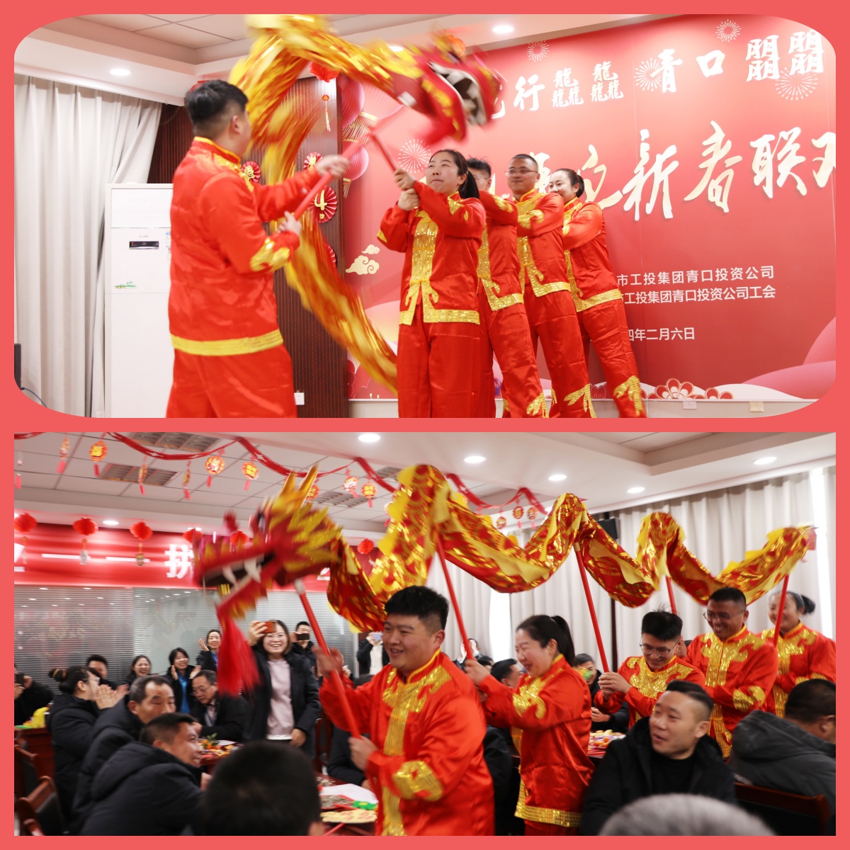 家国书写新篇章,巨龙腾飞耀东方。开场舞《中华舞龙》拉开了联欢序幕,预示新的一年青口投资公司干部职工将接续奋斗,以更加昂扬的姿态、更加饱满的热情,积极投身高质量转型发展的蓝图建设。