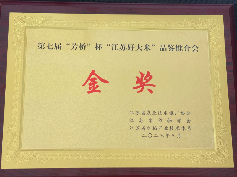 在近期揭晓的第七届“芳桥”杯“江苏好大米”品鉴推介活动上,我公司“盐田玉”香米产品再次荣获金奖。