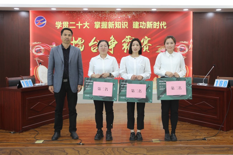 为全面贯彻落实党的二十大精神,引导广大职工学习新精神、领悟新思想、储备新知识,营造学思践行的浓厚氛围,5月9日下午,青口投资公司工会举办“学贯二十大 掌握新知识 建功新时代”擂台争霸赛。公司领导史祥平、梁永、朱文兵、杨青松出席活动。来自公司的10支代表队参加了比赛。
