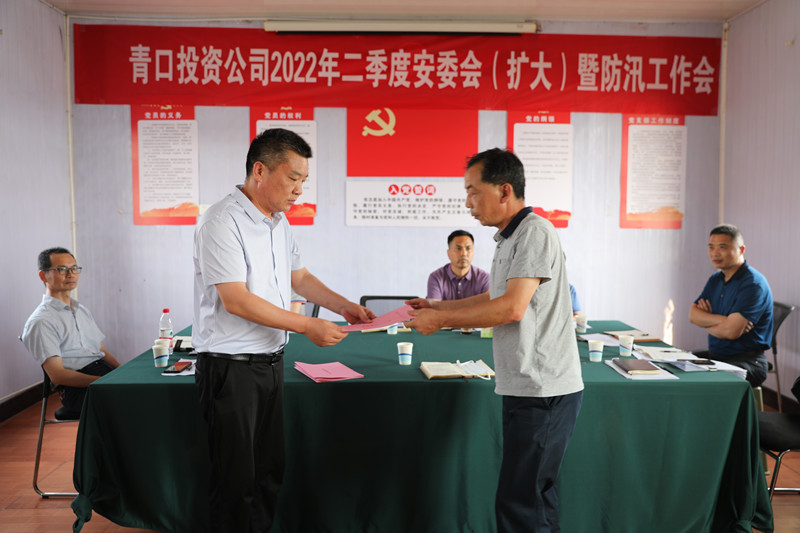 演练结束后,工作会在承担主要防汛任务的三洋分场召开。会上,生产安全部汇报二季度安全工作情况,副总经理许太冬传达《关于深刻汲取近期事故教训采取严厉措施坚决遏制事故多发势头的通知》,副总经理杨守明布置公司安全工作及防汛工作,各单位递交2022年度防汛工作责任书。