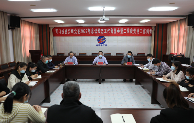 4月24日下午,青口投资公司党委组织召开2022年意识形态工作部署会暨二季度党建工作例会。公司党委书记史祥平,党委副书记、工会主席梁永,纪委书记朱文兵,各单位支部书记、分会主席以及党群各部门全体人员参加会议。