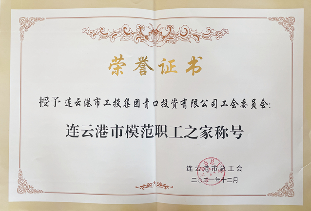 近日,连云港市总工会下发文件,表彰了连云港市模范职工之家等单位和个人,我公司工会喜获“模范职工之家”称号,这不仅肯定了青口公司工会在过去一年的工作表现,更为2022年开春迎新鼓足动力。