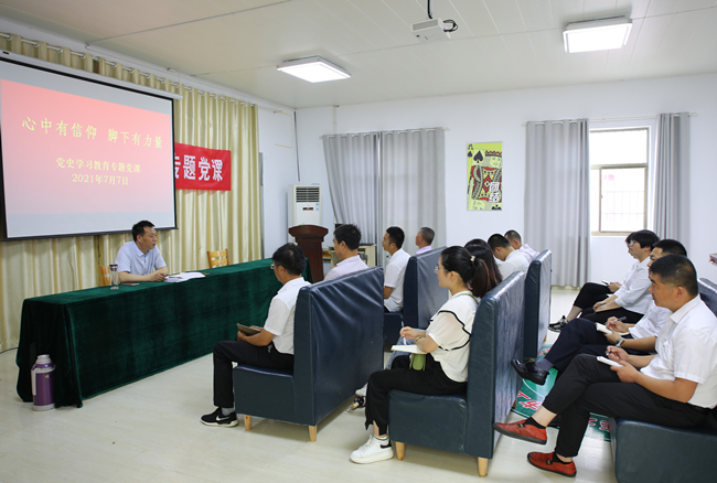 扎实开展党史学习教育,围绕总要求,制定实施方案,建立组织网络,发放党史学习书籍500本,编发党史学习教育简报14期。成立党委读书班,与党委中心组学习互补,开展中心组党史集中学习11次,撰写调研报告6篇。公司领导深入联系点上专题党课6场次,授课达300人次。基层党支部开展党史集中学习400余次,汇总心得体会80余篇、读书学习笔记90本。