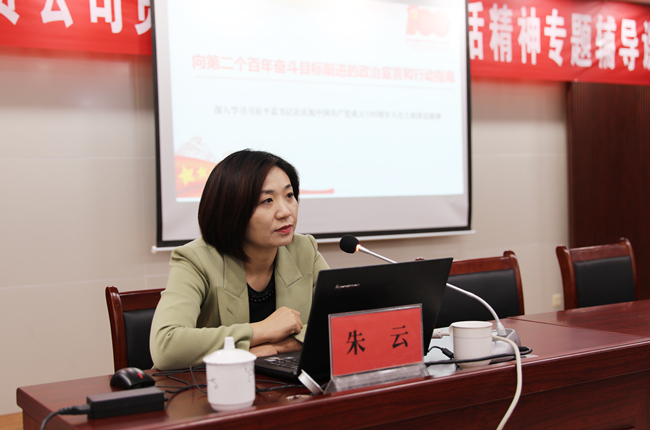 为了深入学习贯彻习近平总书记在庆祝建党100周年大会上的重要讲话精神,进一步教育引导全体党员干部学党史、悟思想、办实事、开新局,不断从党史中领悟前进的智慧和力量。10月21日下午,青口公司举办贯彻建党100周年讲话精神专题辅导课,邀请市委党校法政教研室主任,党史学习教育市委宣讲团成员朱云同志作专题辅导课。公司领导班子成员、各单位党政工负责人、机关全体管理人员以及基层单位在职党员参加。会议由党委副书记梁永主持。