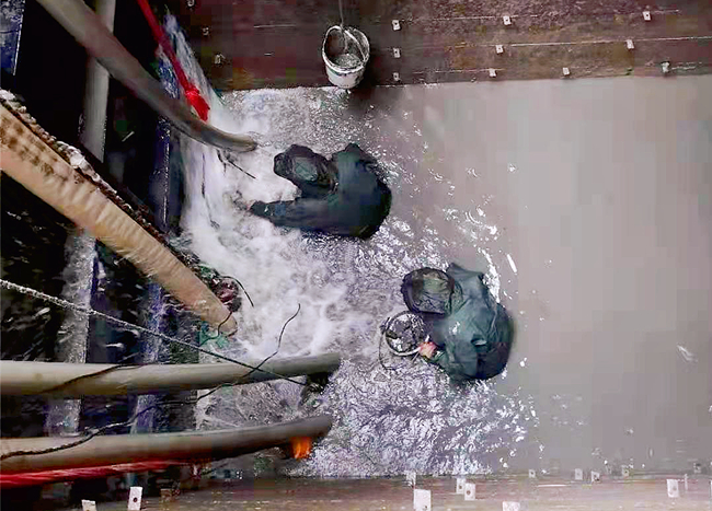 连日来,深度4米的泵池底一批又一批工人冒雨在泥浆中接续奋战。