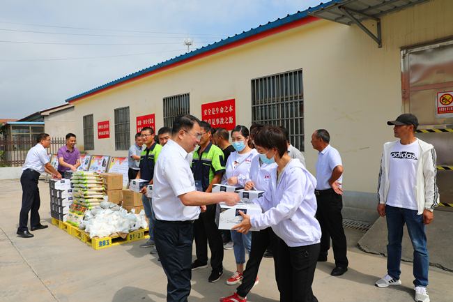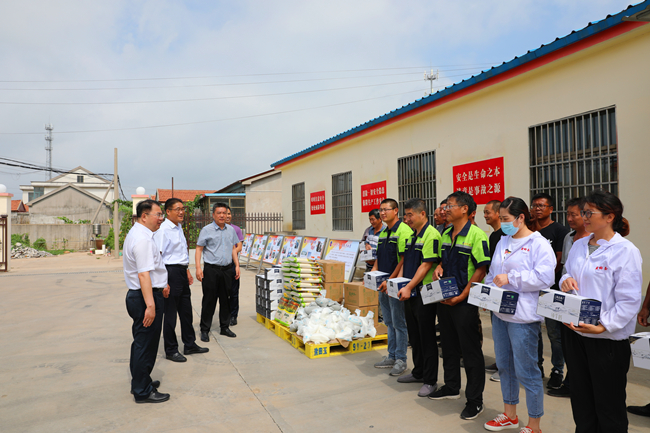 7月28日上午,华体会(中国)公司党委副书记戴鸿鸣、工会主席刘承志一行,到青口公司慰问坚守在高温一线的职工, 为职工们送去了绿豆、牛奶等防暑降温物品,公司部分班子成员陪同慰问。