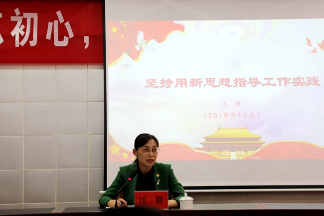 汪书记紧紧围绕“守初心、担使命、找差距、抓落实”十二字方针,以《坚持用新思想指导工作实践》为主题,展开了四个方面的内容的讲解。一、学习新思想的收获体会;二、悟初心、担使命的启示和想法;三、当前工作中存在的薄弱环节;四、用新思想指导实践改进工作。