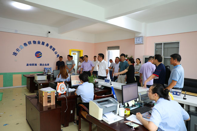 与会人员在泰祥物业服务班组工作人员的指引下,先后参观了小区微型消防站、地下车库、物业服务中心等处,听取了相关情况介绍。