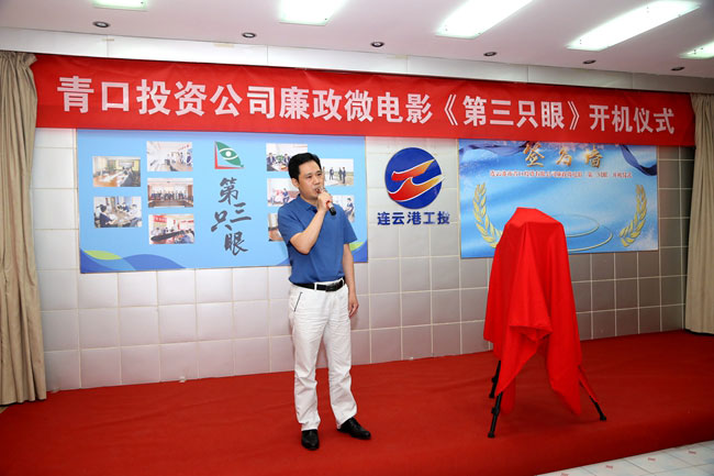 在开机仪式上,青口 党委委员、分管领导宋晟晔致辞,他指出,《第三只眼》作为 第三只眼监督机构工作的一个重要部分,意在以微电影的形式将监督员发挥的职能作用,更加生动、直观地展现出来,也突出纪委在监督执纪过程中,充分发挥“第一种形态”作用,通过谈话函询、批评教育等手段,把党员干部出现的苗头性问题消灭于萌芽阶段,达到警醒教育干部的效果。