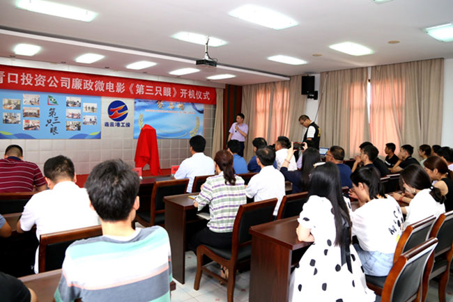 7 月 10 日上午,青口公司隆重举行廉政微电影《第三只眼》开机仪式。华体会(中国)公司纪委副书记王建松、 青口公司党委书记胡传法及全体班子成员、机关全体管理人员、剧组人员参加了本次仪式。