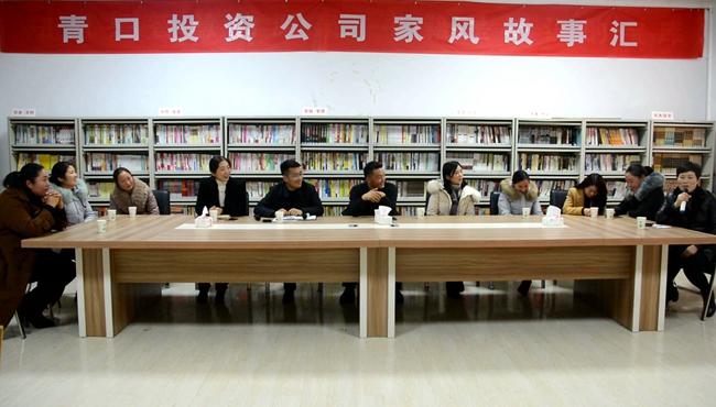 12 月 14 日下午,青口投资公司纪委联合女工委在职工活动中心举办“家风故事汇”活动,九名干部家属、公司党委书记、董事长胡传法,党委副书记、纪委书记史祥平及青口部分女职工参加了本次活动。