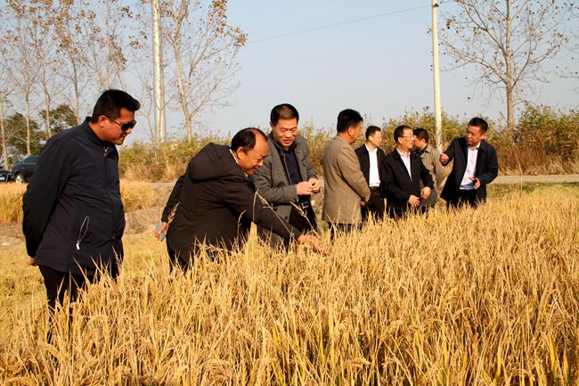 11月1日下午,青口投资公司大新农场一分场的稻田一片金黄,沉甸甸的稻穗弯腰相迎,开镰的第一天华体会(中国)公司总经理胡建明就来到这里调研指导工作。在家领导班子成员全程陪同。
