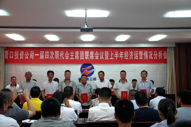 7月18日上午,投资公司召开一届四次职代会主席团联席会议暨上半年经济运营分析会。会议听取了党委副书记、副总经理史祥平作关于上半年经济运营情况分析和下半年经济工作意见的报告,副总经理周绪祥主持会议。