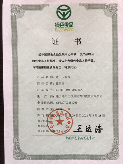 经过 2年时间的奔波和整理材料,“盐田玉”米于2018年5月通过认证,获得绿色食品标志使用权。